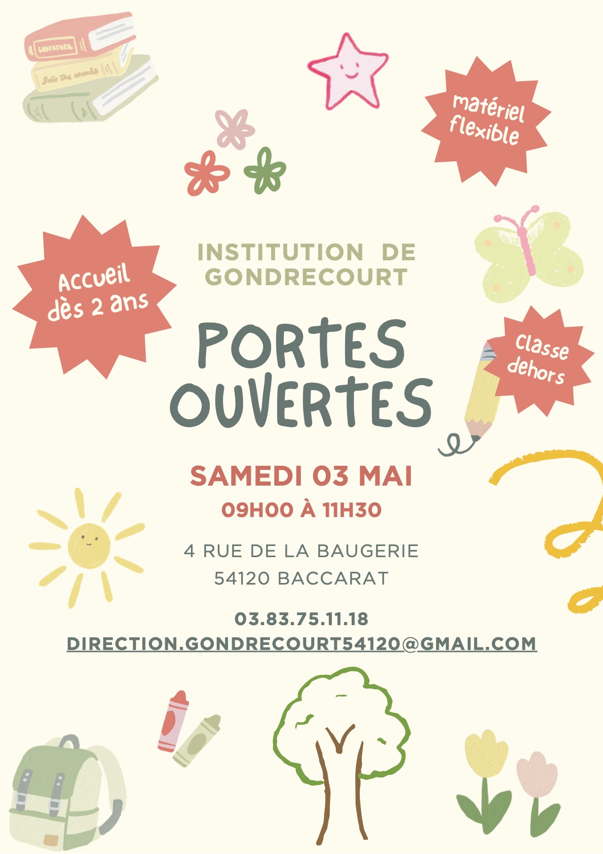 Portes ouvertes de l’Institution de Gondrecourt le samedi 3 mai 2025 de 9h00 à 11h30.